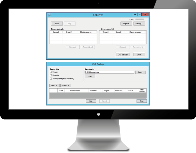 Using the Collector application, SMOOSS-i can backup program, parameter and SRAM data.