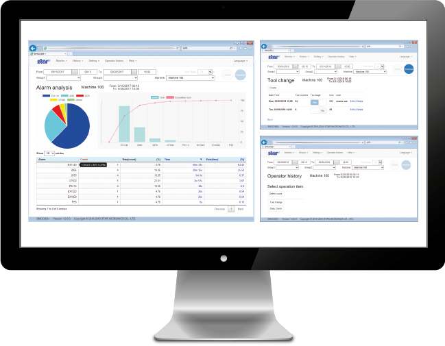 The Star Monitoring & Operator Support System is a web-based application which allows users to remotely monitor machine status, part count, production rate and history via smart phone, tablet or PC.